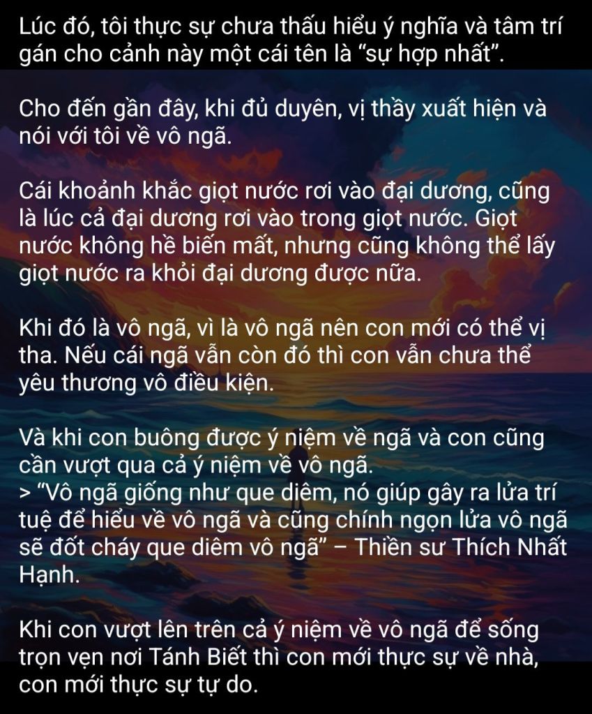 Khi giọt nước rơi xuống biển, thì biển cũng rơi vào giọt nước.